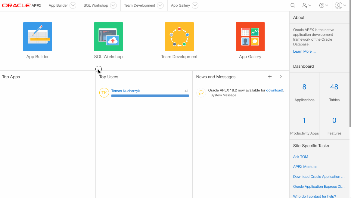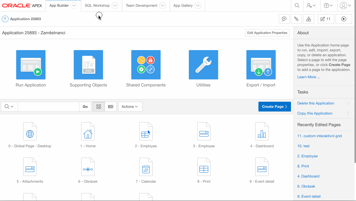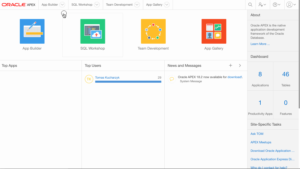Nejdříve je potřeba založit tabulky. Scripty pro tabulky si spustíte v APEXu.