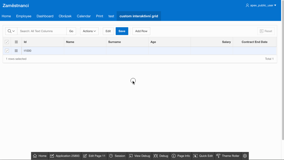Gratuluji, právě jste vytvořili interaktivní grid s custom create, update a delete row funkcí.