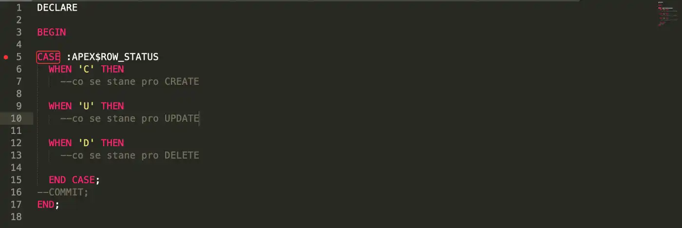 Musíme přepsat proces, který volá create, update a delete pro náš grid, na custom akce. Základem takového procesu je script níže.