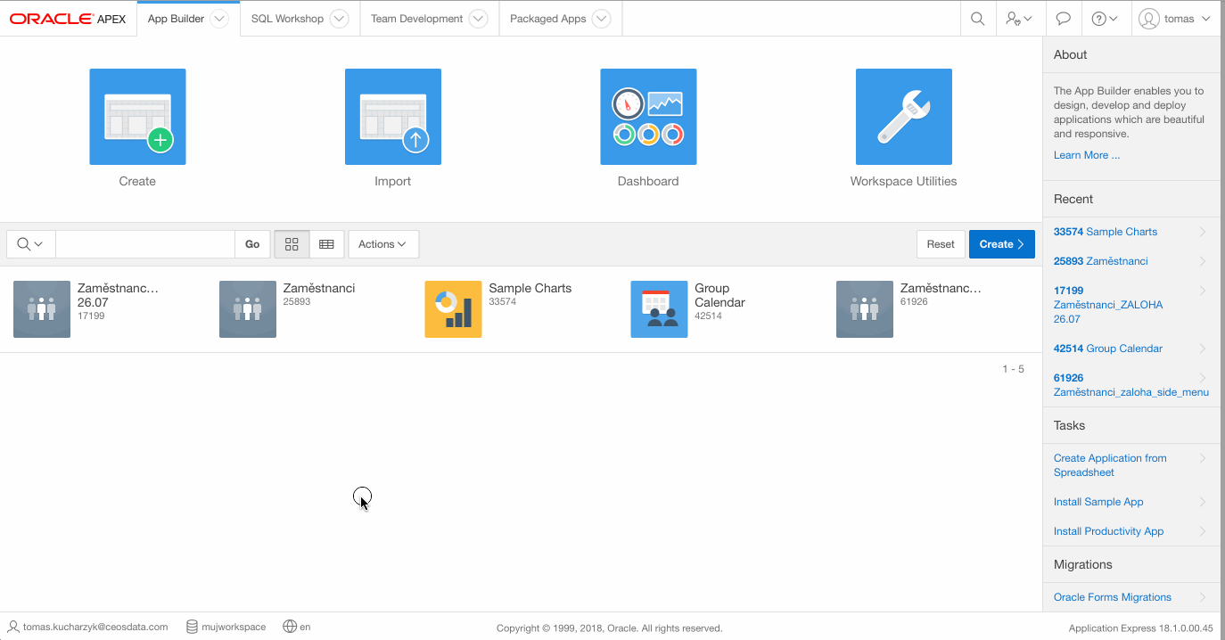 V tomto článku ukážu jaké se dají v APEXu tvořit grafy. A na konci nějaké přidám na dashboard v aplikaci Zaměstnanci.